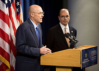 美國財政部長亨利·保爾森7日在新聞發布會上宣布,國會今年7月份為監管住房抵押貸款機構而批準成立的聯邦住房金融署將接手“兩房”日常運作。