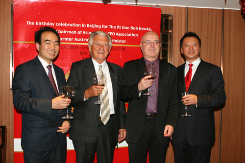 亞太總裁協會全球執行主席鄭雄偉先生首先致祝辭,鄭雄偉高度贊揚霍克先生多年來為全球經濟發展,特別是亞太經濟合作與發展,為中澳友誼,為加快中國發展所做的積極貢獻。衷心祝愿霍克先生在中國的生日過得別具意味。