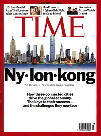 中新網(wǎng)1月20日電 著名雜志《時代》周刊在最新一期選了紐約、倫敦和香港三城作為全球化的模范,敘述這個以共同經(jīng)濟(jì)文化為特征的“三城故事”,文章并創(chuàng)造了一個新詞“紐倫港”(即紐約,倫敦,香港),指出認(rèn)識了這3個國際性大都會,即等同認(rèn)識了這個全球化時代。