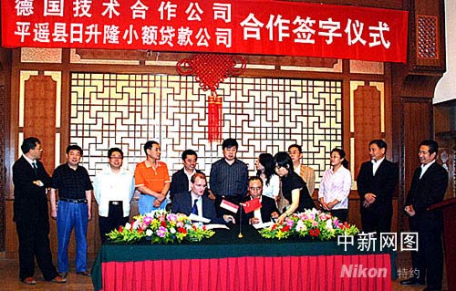山西平遙日升隆小額貸款公司與德國技術合作公司聯手合作簽字儀式在平遙舉行。作者 裴旭亮