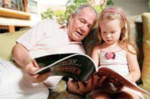 羅杰斯帶著女兒樂樂看圖畫書,她看得津津有味。(圖片來源:臺灣《商業周刊》;攝影/張家毓)