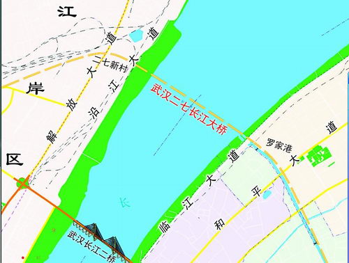 根據國家發改委批文,按照國務院批準的《武漢市城市總體規劃(1996年至2020年)》以及將武漢城市圈建設成“全國資源節約型和環境友好型社會建設綜合配套改革試驗區”的要求,為盡快打通武漢市二環路,完善武漢市主城區道路網骨架,進一步提高過江通道能力,同意建設武漢市二七長江大橋項目。該橋橋址位于長江二橋與天興洲公鐵兩用長江大橋之間,距長江二橋3.2公里。路線沿京廣鐵路下行線,穿漢口解放大道及江岸貨場鐵路疏解區,過長江后經武昌羅家港泵站,沿羅家港排水明渠至和平大道。