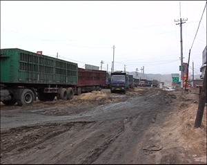 在離這家企業(yè)不遠(yuǎn)的一處私營煤礦門口,記者見到頗為壯觀的場面,一些重型貨車全是來拉電煤的,由于礦上庫存不夠,這些車輛只能在這等待現(xiàn)生產(chǎn)出來的電煤。
