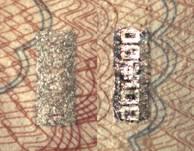 第三種偽造安全線是使用雙層紙張,在紙張夾層中放實(shí)物線,線與紙張結(jié)合較差,線表面印刷磁性油墨。