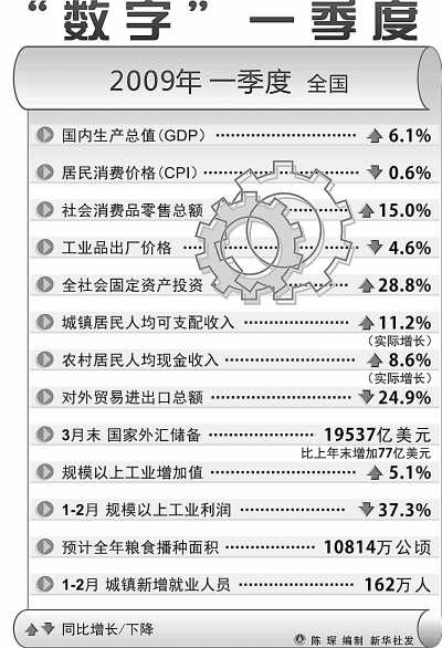 與上年同期比,一季度GDP6.1%的增長幅度回落了4.5個百分點,雖然不是個漂亮的數字,但放在金融危機的大背景下看,各個方面都會承認這是一個來之不易、好于預期的增長速度。細讀統計數據的8個部分,國民經濟運行的積極變化顯而易見。國家統計局新聞發言人李曉超用兩個“穩”、兩個“快”、三個“高”和三個“縮小”,來概括這種積極變化的幾個方面。