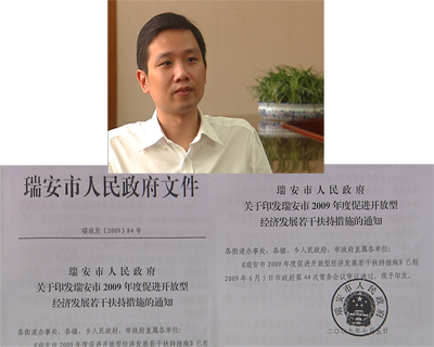 圖片03:浙江瑞安市副市長方暉介紹到,為鼓勵企業擴大出口規模,瑞安市拿出專項資金對自營出口的企業給予5—10萬元的獎勵,企業到境外參加展會,每個展位給予1.5萬到2萬元的補助,另外企業在國際市場宣傳推介、開展? onkeypress=