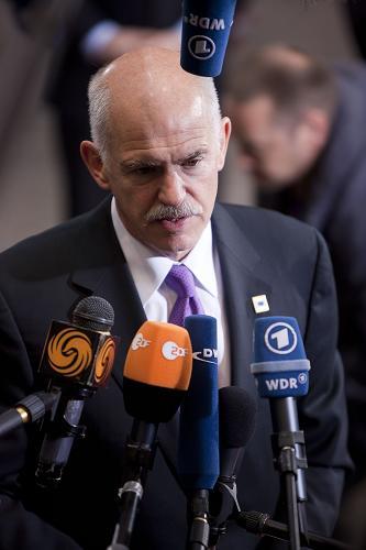 5月7日,希臘總理帕潘德里歐抵達(dá)比利時(shí)首都布魯塞爾歐盟委員會(huì)總部后接受采訪。歐元區(qū)16國(guó)領(lǐng)導(dǎo)人7日晚間在布魯塞爾召開(kāi)特別峰會(huì),評(píng)估各國(guó)議會(huì)對(duì)2日啟動(dòng)的希臘救助機(jī)制的審批情況,并重點(diǎn)討論如何加強(qiáng)歐元區(qū)經(jīng)濟(jì)治理以及強(qiáng)化對(duì)成員國(guó)的財(cái)政監(jiān)督問(wèn)題。 新華社發(fā)(莫納斯攝)