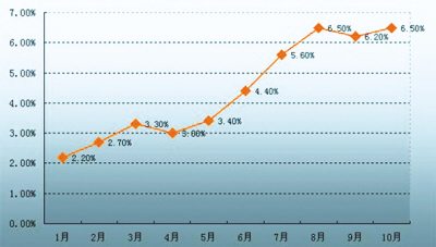 財經評論員葉檀認為,央行暫不加息可能來自兩個考量,一是決策層判斷目前國內通脹壓力并不大,另一個則是隨后更加變通的匯率政策能夠緩解國內的通脹壓力。9月份的CPI上升6.2%,10月份則上升到6.5%,這和8月份CPI增幅創下的逾10年最高點持平。盡管各月的通貨膨脹率有所波動,但大多數經濟學家預計今年全年的通脹率會在4.5%左右。也因為這樣,有學者估計來年央行可能調高CPI的目標值,將其上調至4%甚至5%。