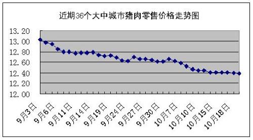 中新網10月22日電 國家發改委網站消息稱,據國家發展改革委價格監測中心監測,上周(10.15-10.19,下同)全國36個大中城市豬肉(精瘦肉)集市平均零售價格每500克為12.40元,比上期(10.8-10.12,下同)下降0.48%。其中,16個城市豬肉價格小幅下降,其它城市豬肉價格與上期基本持平或略有上漲。