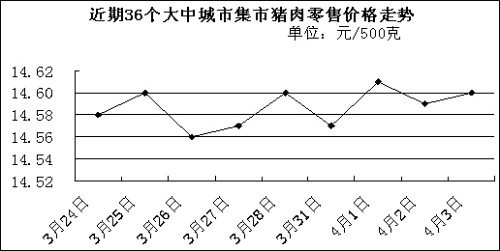 中新網(wǎng)4月7日電 國家發(fā)改委網(wǎng)站消息稱,據(jù)國家發(fā)展改革委價(jià)格監(jiān)測中心監(jiān)測,上周(3.31-4.4,下同)全國36個(gè)大中城市集市豬肉(精瘦肉)平均零售價(jià)格每500克為14.59元,比前一周(3.24-3.28,下同)上漲0.07%。