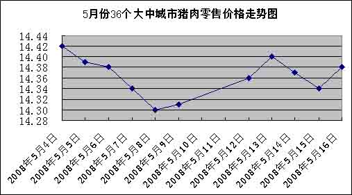 中新網(wǎng)5月19日電 中國(guó)國(guó)家發(fā)改委網(wǎng)站消息,據(jù)發(fā)改委價(jià)格監(jiān)測(cè)中心監(jiān)測(cè),上周(5.12-5.16,下同)全國(guó)36個(gè)大中城市豬肉(精瘦肉)平均零售價(jià)格每500克為14.37元,比前一周(5.5-5.9,下同)略漲0.21%。