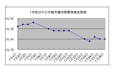 中新網(wǎng)7月21日電 國(guó)家發(fā)改委網(wǎng)站稱,據(jù)國(guó)家發(fā)展改革委價(jià)格監(jiān)測(cè)中心監(jiān)測(cè),上周(7月14日~7月18日)全國(guó)36個(gè)大中城市集市、超市豬肉(精瘦肉)平均零售價(jià)格每500克為14.40元,比前一周(7月7日~7月11日,下同)下降0.28%。