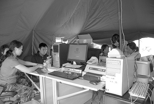 據(jù)現(xiàn)場(chǎng)工作人員介紹,現(xiàn)在如果市民在災(zāi)難中遺失了銀行卡和存折,只憑本人身份證可以在帳篷銀行辦理掛失,但是取現(xiàn)暫時(shí)無(wú)法實(shí)現(xiàn)!案鶕(jù)特事特辦的原則,我們總行正在根據(jù)最新情況研究處理方案,希望能為更多的市民提供服務(wù)。”