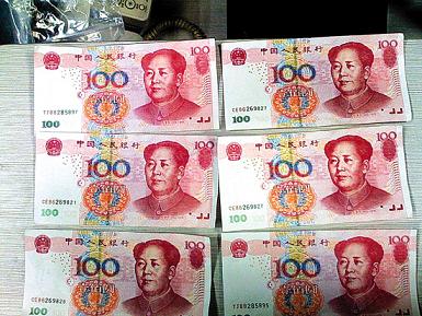 晚上姚先生夫婦回到家收賬,“我用驗鈔機查收,發現6張百元鈔票都是假的。老人家對錢接觸得不是很多,根本沒意識到那是假鈔。”當即姚先生就判斷是下午那伙人給的假錢,因為整整一天,只有那幾筆生意,“他們肯定是一伙的,看老人一個人看店,便想得便宜。”姚先生稱,這些假鈔一般人根本看不出來,外表和真鈔一模一樣,他用驗鈔機才驗出是假鈔。姚先生向記者展示收到的6張假鈔,其中竟然有兩張編號是一模一樣的,均為CE86269827,其它四張編號分別為CE86269828、CE86269821、TJ88285895、TJ88285897。