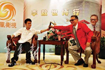 悵惘中的李敖,還有一件牽腸掛肚的大事,就是自己的兒子李戡。李敖對自己17歲的兒子很滿意,認為是可塑之材,在“應該沒有下一次了”的情況下,他很迫切地在記者面前推薦兒子。“我的兒子李戡這個月才過17歲,他在臺灣成長,受過教育的污染。這次考上了“國立”臺灣大學,臺大和清華都錄取了他,但他最終還是選擇世界排名50位的北大。”李戡最近出了一本新書《李戡戡亂記》。李敖將兒子的新書在面前舉了又舉,讓記者拍照,還讓兒子坐到自己身邊。采訪開始前,劉長樂對記者說,有人說,李敖這次來是“托孤”的。