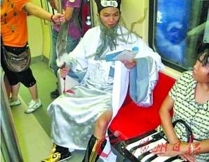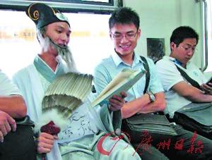 近日,一名青年男子穿白色古裝,臉上黏著灰白胡子,手持鵝毛扇,扮作諸葛亮出沒于北京地鐵,繁華鬧市中,異常“拉風(fēng)”并迅速在網(wǎng)上躥紅。