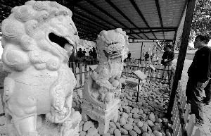 中山公園的蘭亭八柱和蘭亭碑、文津街老國圖的文源閣碑、中國對外友協院中的綺春園銅獅……三年前公布的“圓明園流散文物調查報告”統計,圓明園文物散落在北京地區有近百件,包括碑碣、石雕、石刻、玉器、瓷器等,集中在十余處單位和民宅。