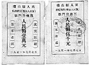 海口莫先生家里保存著兩張瓊山縣發(fā)動(dòng)百姓向志愿軍捐款,購(gòu)買“瓊山人民號(hào)”飛機(jī)的證明捐款票證。 沈善東 攝