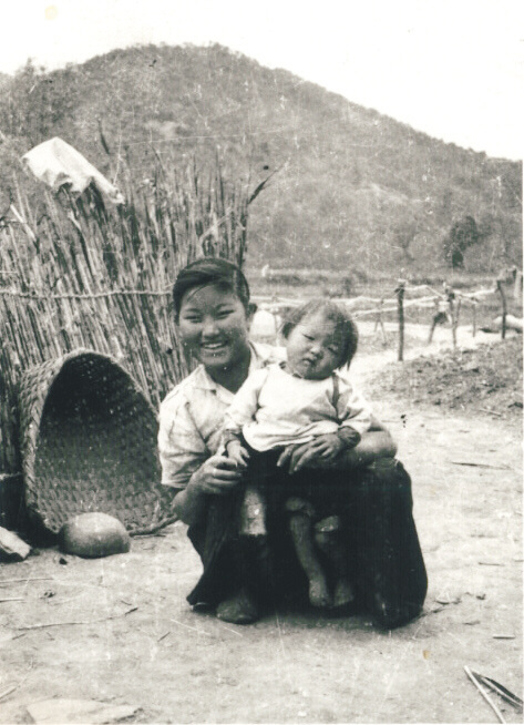 楊大群向記者展示了幾幅泛黃的照片,有兩幅是他在朝鮮戰場上照的。另一幅是一位抱著孩子的朝鮮婦女,旁邊是茅草房。楊大群表示,這位婦女就是當年毛岸英從火堆中救出的“阿媽妮”。