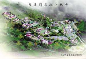 北少林寺是天津最早的寺院和佛教資源,原址在今盤山東南麓、號稱“中盤”的開闊山坡上。目前,原址處僅存有紅龍池、多寶佛塔,周圍居住18戶人家83位村民,現正在搬遷中。按釋永信大師的要求,重建工程將遵循環境保護和生態效益的理念,原址處栽種的果樹等都不會移栽。原有的白色多寶佛塔也將保留并進行修繕,紅龍池將恢復一池碧水的面貌。