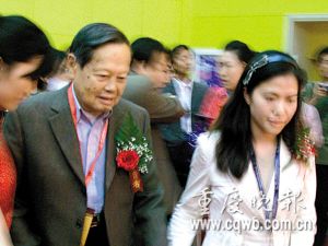“翁帆和我都沒有來過鄭州……”“翁帆和我都感覺這座城市變化很大……”在現場,記者發現了一個非常有趣的現象,楊振寧表達任何一個觀點,都習慣把翁帆帶上,而上臺、下臺,兩人都會主動地把手牽在一起,非常甜蜜。