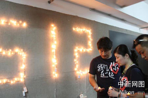 中新網(wǎng)南京六月十三日電 (牛莉) 六月十二日下午兩點二十八分,一群南京市民在南京先鋒書店,自發(fā)站成一排,手里拿著蠟燭,表情嚴(yán)肅,低頭默哀,他們的前方赫然醒目的亮著5.12這個銘記在人們心中的數(shù)字。