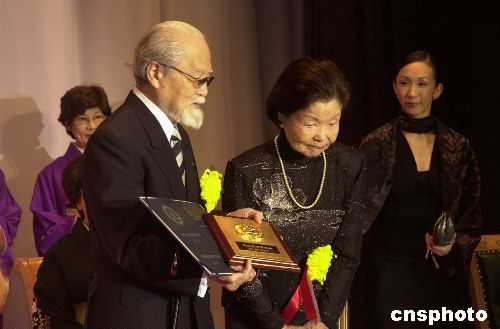 長年積極從事中日文化交流活動的日本松山芭蕾舞團團長清水正夫和夫人松山樹子,曾獲得中國文化部頒發的“文化交流貢獻獎”后百感交集。 中新社發 王健 攝