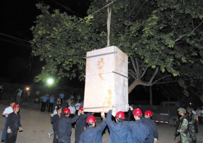 昨日記者獲悉,南京大報恩寺“謎中之謎”——地宮鐵函在眾多持槍武警的護衛下,于27日晚起吊出地宮,運回南京市博物館。南京博物院文物保護專家奚三彩、中國考古學會理事長徐蘋芳等國內專家已陸續到來,近期將集體對神秘鐵函的開啟制定出方案。