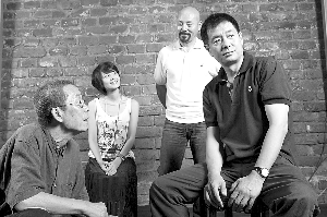 復排經典,導演林兆華(左一)強調要重新詮釋。圖為導演與演員高圓圓(左二)、周明汕(右二)、濮存昕(右一)在一起。