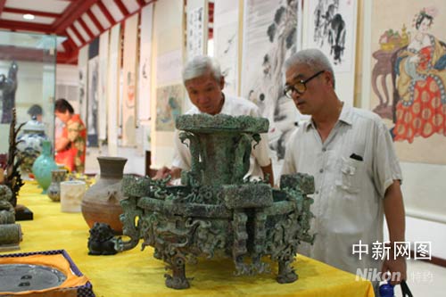 據(jù)王老介紹,令人嘆為觀止的《百鶴圖》上世紀(jì)初在一座元代古墓中出土,后被他收藏。百只形態(tài)各異的白鶴,或棲于松枝,或躍躍欲飛。靜于紙上的松樹、白鶴因畫家精微的表現(xiàn)手法如流動(dòng)的圖像;高八十九公分的良諸玉琮,比臺(tái)北故宮博物院中收藏的五十九公分高出了三十公分,非常罕見;戰(zhàn)國(guó)尊盤 、從漢代至清代時(shí)期的陶器、瓷器。近千件藏品使得開展第一天就吸引了近千名市民前來(lái)觀寶。一位從事藝術(shù)工作的參觀者稱:“這是藝術(shù)的饕餮盛宴,這些藝術(shù)品所表達(dá)的美好祝福,所有觀者都能感受得到。”