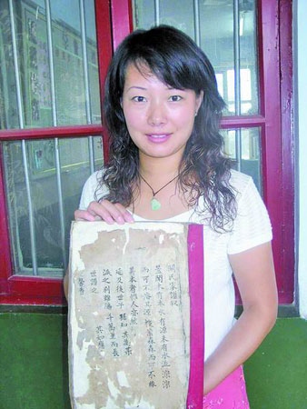鄧州市檔案局工作人員展示館存的《關氏家譜》