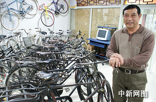 據了解,馬先生收藏自行車已經30多年了。他告訴記者:“我收藏的第一輛自行車是1970年的英國鳳頭自行車。目前,我收藏的年代最久遠的一輛自行車是日本產于明治三十三年,也就是公元1900年的一輛的自行車,迄今已經有109年的歷史了。”
