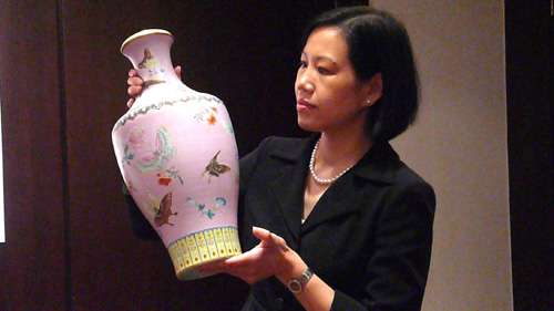圖:曾志芬表示,清乾隆御制“粉紅地粉彩軋道蝴蝶瓶”是孤品(大公報攝)