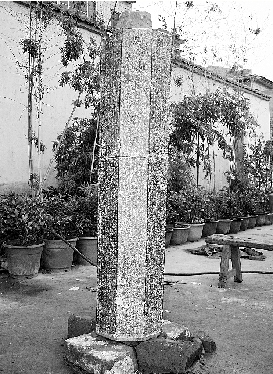 據(jù)新密市文物保護(hù)管理所所長(zhǎng)錢(qián)立森介紹,出土的石柱應(yīng)該是一個(gè)宋代佛教經(jīng)幢,應(yīng)有座有帽,但現(xiàn)場(chǎng)沒(méi)有發(fā)現(xiàn)。經(jīng)清洗測(cè)量,經(jīng)幢通高1.55米、直徑0.3米,八棱,每棱長(zhǎng)0.13米,均刻有文字,兩面風(fēng)化比較嚴(yán)重,其余字跡清晰。