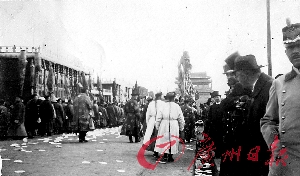由于慈禧太后的“奉安大典”在當時屬機密事件,因此,大典舉行當天當然也不允許任何媒體進入拍照。當時,天津著名的照相館福升照相館有幾位攝影師悄悄混進了送葬的隊伍,跟蹤拍攝慈禧太后入葬的過程,為了能夠混入隊伍,他們不惜花重金買通了當時的直隸總督。然而,幾位攝影師后來很快被人發(fā)現(xiàn)了,他們因此獲罪,后來被判入獄監(jiān)禁10年,而那位直隸總督也因此被免職,這件事成為當時轟動一時的“東陵照相案”。后來,幾位獲罪入獄的攝影師究竟是否獲釋已無人知曉,不過,這些照片后來卻流入民間。