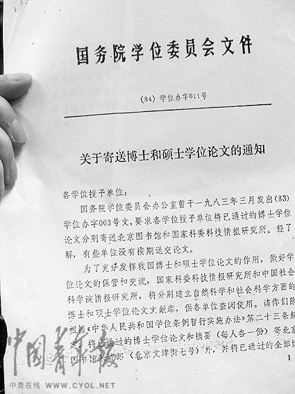 國(guó)務(wù)院學(xué)位辦教育部辦公廳檔案處:查無此文