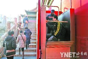 一位工作人員介紹,升降機是從國外進口的,總價在250萬元左右。在保和殿東側,工作人員為記者演示了升降機的使用方法。升降機內有一個黑色把手,站在升降機內,向上搬動把手,升降機就會運行。這部升降機包括兩部分,升至一半時,需要換乘另一部升降機。從保和殿底,升至殿前,只需要不到1分鐘。工作人員說,如果升降機出現故障,還可以使用手動的“爬樓機”,保證殘疾人游客的需要。