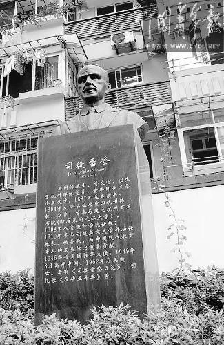 11月23日,星期天。杭州市下城區耶穌堂弄的基督教會天水堂里,像往常一樣傳出基督教徒們唱詩的聲音。司徒雷登的父親曾于1875年開始擔任這個教堂的主持。如今,司徒雷登的半身塑像,正立在距離教堂大約百米的堂弄里,那里也是他故居所在的位置。塑像對面的長凳上,一位納著花鞋墊的中年婦女,正與人湊在一起說著家庭瑣事。問及司徒雷登這個名字,她們搖了搖頭,對6天前已經舉行的下葬儀式,她們更是一無所知。