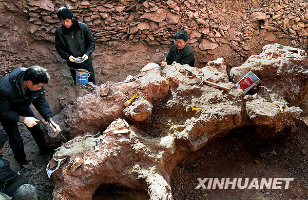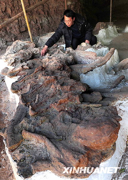 河南省汝陽縣恐龍化石發掘近日又有重大進展,在汝陽縣劉店鄉發現了成片密集化石區,出土的恐龍化石形體巨大,粗壯異常,其中最大的一塊長3.3米、寬2.3米。經專家認定,這塊巨型恐龍化石比2007年7月命名的亞洲最大恐龍化石“汝陽黃河巨龍”大很多,究竟屬于什么恐龍屬種還需進
