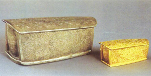蔣老告訴記者,七寶鎏金塔是分開組裝的,由塔剎、山花蕉葉、塔身和塔座組成。他從塔身部位的側(cè)面一個破損的縫隙中,可以看見寶塔的木制結(jié)構(gòu)。目前,從X光探視圖分析,其中盛放著銀槨,銀槨內(nèi)還放著一個金棺,金棺內(nèi)可能有一個琉璃盒,里面應(yīng)該供奉著石碑上記載的:“圣感舍利十顆”、“佛頂真骨(釋迦牟尼)”、“諸圣舍利”。那么這批圣物究竟是從何而來的呢?