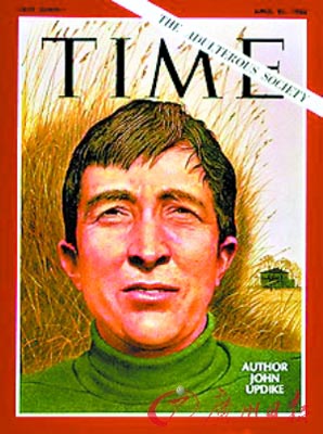 1968 年的小說(shuō)《夫妻們》描寫(xiě)了小鎮(zhèn)中產(chǎn)階級(jí)家庭組織的換妻派對(duì),令他榮登當(dāng)年4 月26 日《時(shí)代》周刊的封面,大標(biāo)題赫然印著“通奸社會(huì)”(The Adulterous Society)。2005 年他的小說(shuō)《村莊》入圍英國(guó)老牌文學(xué)雜志《文學(xué)評(píng)論》一年一度的“最差性愛(ài)描寫(xiě)?yīng)劇遍L(zhǎng)名單,還好,性愛(ài)描寫(xiě)最終不敵蓋爾斯克倫的《溫克勒》,沒(méi)有得獎(jiǎng)。