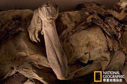 我在死者的隊列前走過,說不清心里究竟是什么滋味。在西方文化里,死人的尸體并不是能經常得見的,失去生命的軀殼都用尸布包裹,藏于暗處。這些死者都籠罩著一種神秘氣息,從身上仍可窺見其生前的處世態度及信仰。我帶著一種病態的興致檢視這些尸體(原來死亡就是這樣的呀),意識到活人與死人之間的最大區別就是,你可以饒有興味地、近距離地、直勾勾地盯著死人看,活人可受不了被如此打量。然后我又想到,這里真該播放邁克爾·杰克遜的《顫栗》做背景音樂,因為這些尸體看起來實在太像恐怖片里拙劣地拼接起來的僵尸,偉大的自然之力卻造就了類似低級藝術品的效果,真是既滑稽又可悲。他們張著下頜,仿佛在無聲地號哭,漚爛的牙齒暴露在外,又像是帶著邪惡的微笑,讓人不寒而栗,空洞洞的眼窩毫無生氣,萎縮的顴骨和僵硬的關節上粘連著一片片硬化的皮膚。這些人大多數個頭比較小,手臂交叉著被鐵絲和釘子垂掛起來以保持直立,腦袋懶洋洋地搭在肩膀上,肢體竭力模仿生前的模樣,卻無可奈何地漸漸腐化崩潰。