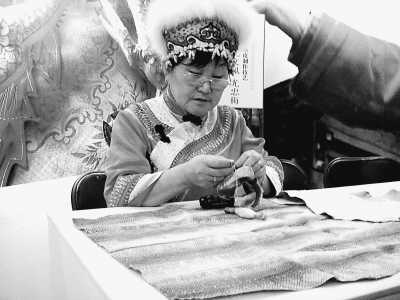 “鞋雖小,要做兩天呢。魚皮從剝下、去鱗、晾干、軋熟、裁剪縫制,工序多,很累人,要花幾天工夫的。”說話時,她手里的針仍然在來回穿梭。這里的她,是黑龍江同江市津街口鄉漁業村的漁民尤文鳳,魚皮服制作技藝的國家級代表性傳承人。中國非物質文化遺產傳統技藝大展,目前正在北京舉行,大展期間,隨著人流走進展館時,我在她的展位前一再流連。
