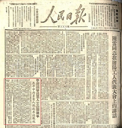4.1949年2月28日,《人民日報》關于李濟深等民主人士由沈陽抵達北平的報道