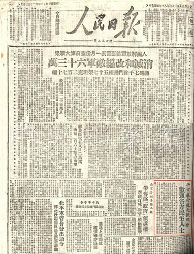 5.1949年3月1日,《人民日報》關于北平舉行盛大歡迎會歡迎各方民主人士的報道
