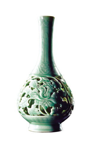 除了八方蓋盒,此次香港蘇富比春拍推出的明宣德青花藏文“平安頌”高足碗,預(yù)計成交價超過2000萬港元,清乾隆粉青釉浮雕芭蕉葉鏤空纏枝牡丹圖長頸膽套瓶,估價1500萬至2000萬港元,現(xiàn)今只有一件造型紋飾與它完全一致的玲瓏瓶,目前藏于北京故宮博物院。而這些拍品同屬一個專場——“玲瓏八寶——歐洲私人清宮御瓷收藏專場”。
