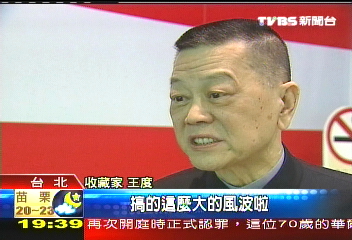 王度在接受TVBS采訪時還說:“他跟我聯(lián)絡(luò)過一次,他說如果這個拍賣的很順利,價錢好的話,這個龍首也愿意拿出來,結(jié)果沒有想到這兩個首,搞的這么大的風(fēng)波啦!所以現(xiàn)在人都怕了,我打電話給他,他也不給我聯(lián)絡(luò)了。”
