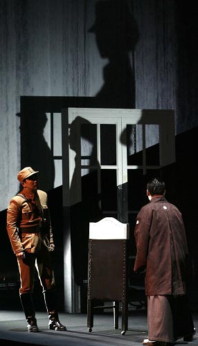 相比原著小說,舞臺上的《風聲》敘事和人物情感更為跌宕和大線條,因此頗具沖擊力,但很多細節和人物的合理性因此略顯不足。不過,一波三折的故事情節和抽絲剝繭的謎底揭曉,始終讓全劇保持著可看性。尤其是下半場,和上半場為交代情節略顯拖沓的節奏相比,更為緊張和精彩。