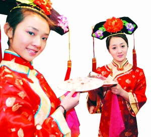 無(wú)論民間、官場(chǎng)在宴會(huì)的時(shí)候一定是男女分席,沒(méi)有說(shuō)夫婦兩人擠在一個(gè)桌子上的。還有,八仙桌最多坐六個(gè)人。清裝戲里不該有大圓桌,大圓桌是民國(guó)以后才有,而且只能坐九人,不能坐十人,正對(duì)面留一個(gè)菜口。
