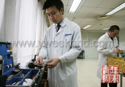 去年殯儀館招來一個漂亮的小姑娘,第一天培訓(xùn)結(jié)束后,老師傅問她有沒有男朋友。小姑娘說有。老師傅回頭沖著張洋喊,別惦記了,人家有。后來,張洋鼓足勇氣追過一陣,但沒追上。坐在記者對面,他有點不想提“失敗的原因”。其實,這個男孩長得很精神,只是臉上常常流露出一種不符合年輕人的老氣和憂郁。“可能我的性格問題吧,我像一60年代的人,不活份,不新潮。”張洋說不清自己是天生如此,還是這份工作造成的——至今,他都不習(xí)慣用Ipod,聽音樂還用CD機。